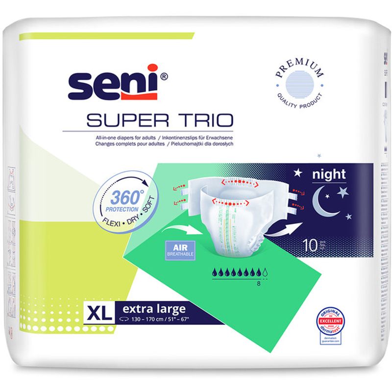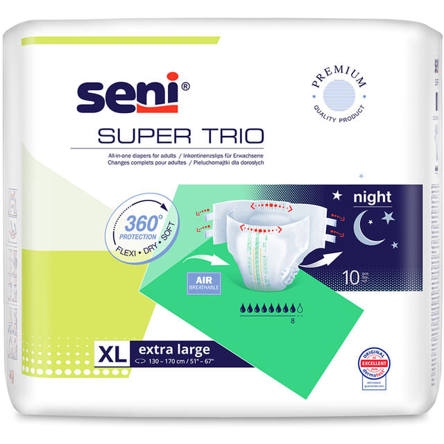 Ingrijire personala si CosmeticeProduse ingrijire corpScutece adultiAbsorbante pentru incontinenta Seni Super Trio, marimea XL, 10 bucati