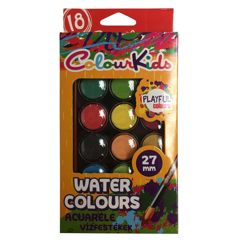 Jucarii si Timp LiberPapetarieProduse scoalaArt & craftAcuarele semi-uscate Colour Kids cu pensula 27 mm / 18 culori