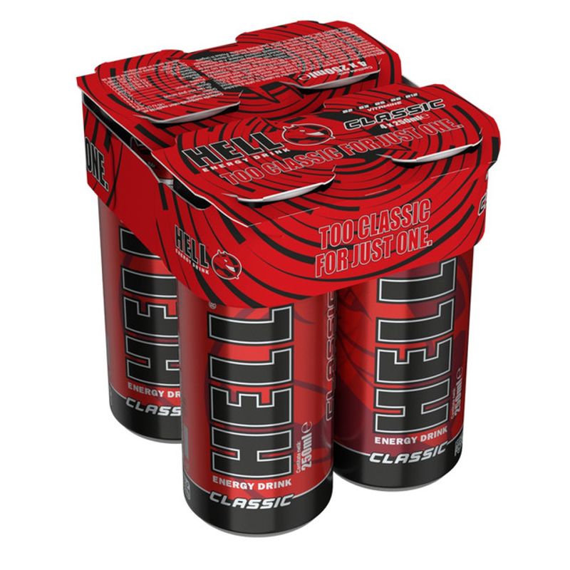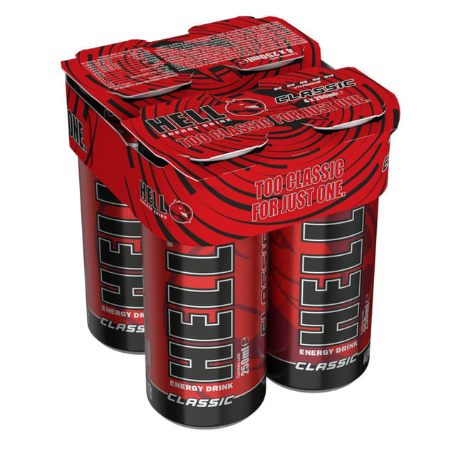 Aroma racoritoare si ingrediente de calitate superioara. De cand a fost lansata pe piata, bautura HELL Classic a continuat sa fie extrem de populara in randul consumatorilor. Care este secretul succesului sau? Continutul de 32 mg/100 ml de cafeina, zahar de calitate, cinci tipuri de vitamine din grupul B si aroma unui amestec de fructe proaspete, fara conservanti. Este alegerea perfecta, daca aveti nevoie de un mic impuls. Disponibil acum si intr-un pachet convenabil de 4 unitati.