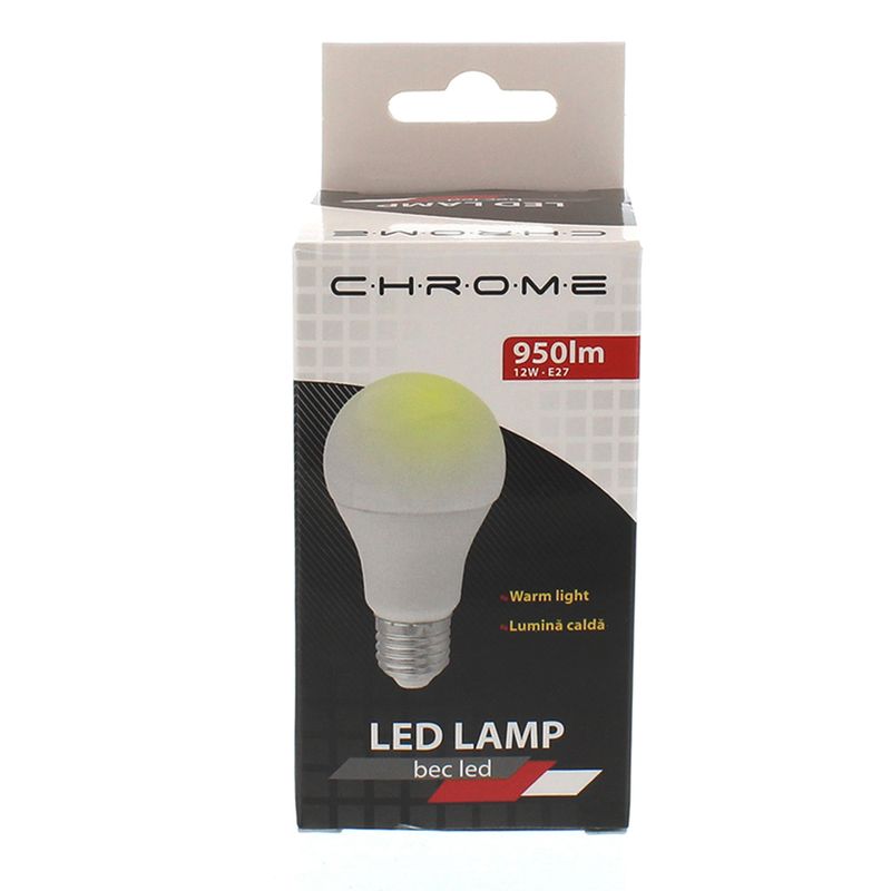 Bec cu led A60 E27, de 12 W si 230 V, cu lumina calda Chrome.