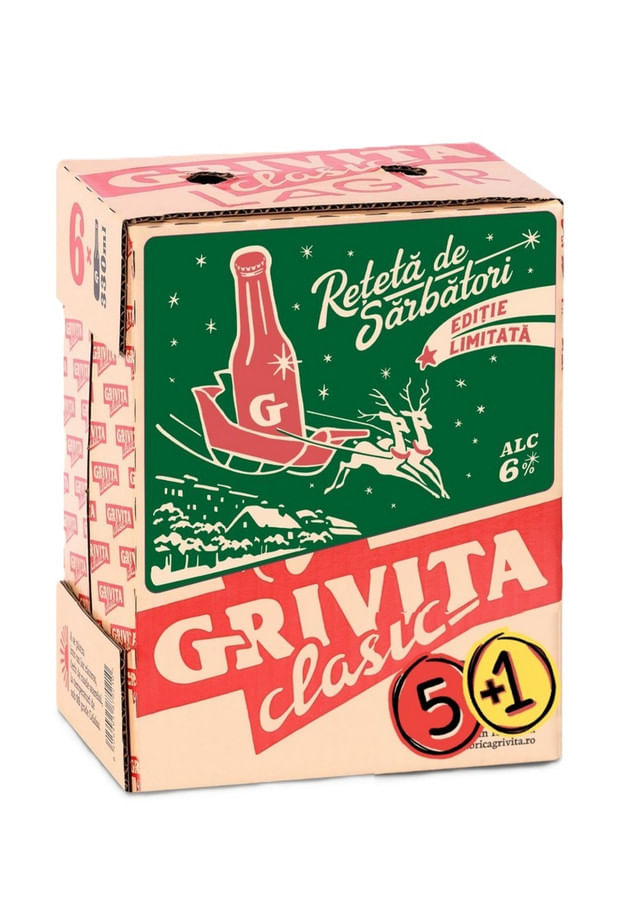 Bere blonda nefiltrata Grivita Clasic de Sarbatori, 5+1 x 0.33 l Bere blonda nefiltrata Grivita Clasic de Sarbatori, 5+1 x 0.33 l