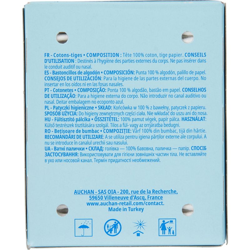 Betisoare de urechi Auchan in cutie dreptunghiulara, 300 bucati Betisoare de urechi Auchan in cutie dreptunghiulara, 300 bucati