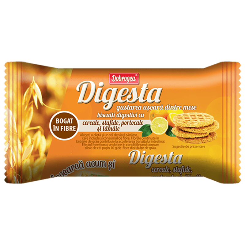 Biscuiti cu cereale, stafide, portocale si lamaie Digesta, 84 g - Comanda online acum