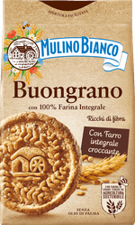 Bucura-te de dimineti cu gust si sens: Biscuitii Buongrano de la Mulino Bianco combina savoarea autentica italiana cu grija pentru natura. Realizati exclusiv din faina integrala de grau — fara alte tipuri de faina adaugate — acesti biscuiti sunt o alegere bogata in fibre.