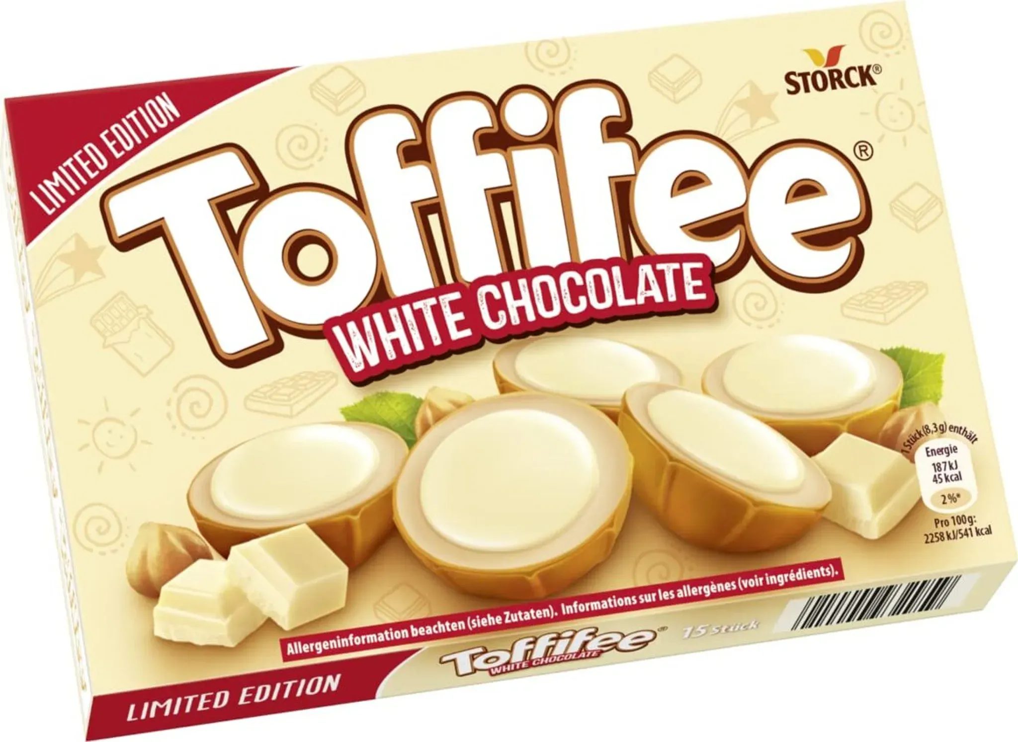 Alune de pădure (10%) în caramel (41%) cu umplutură de cremă de lapte degresat (37%) și ciocolată albă (12%). Zahăr, grăsimi vegetale (palmier, shea), alune de pădure (13,1%), sirop de glucoză, lapte praf degresat (8,1%), lactoză, umectant sirop de sorbitol, unt de cacao, lapte degresat condensat, zer dulce condensat, lapte praf integral, pudră de smântână, sirop de zahăr din trestie, zer pudră, emulgator lecitine (soia), arome (conține arahide), lapte bătut pudră, sare. Poate conține, de asemenea, migdale și alte nuci.
