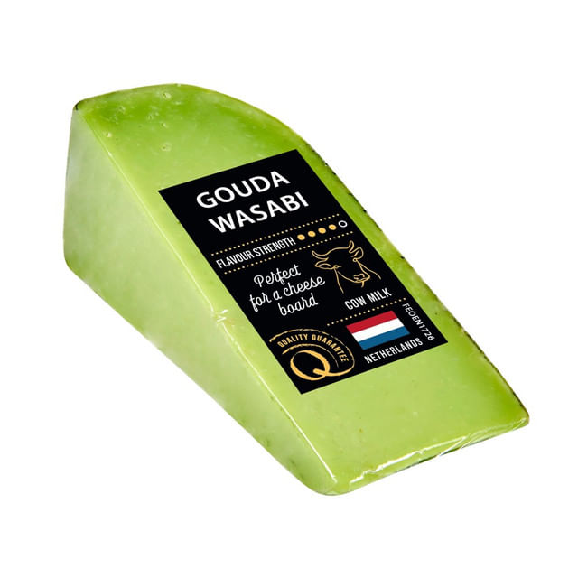 O combinatie de branza Gouda cremoasa si blanda cu wasabi ascutit si picant. Nu numai ca atrage privirile si curiozitatea prin culoarea sa verde intens. Aroma sa este, de asemenea, un rasfat. Aroma distincta si vizibila a wasabi-ului promite o senzatie gustativa incredibila. Gustul branzei este vizibil acidulat, dar cremos in acelasi timp.