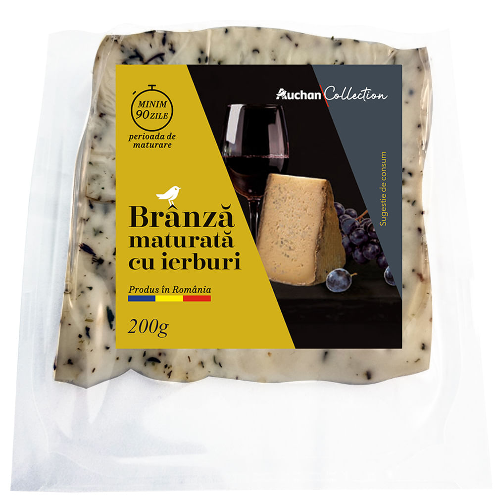 Branza maturata cu ierburi Auchan Collection, 200 g Branza maturata cu ierburi Auchan Collection, 200 g