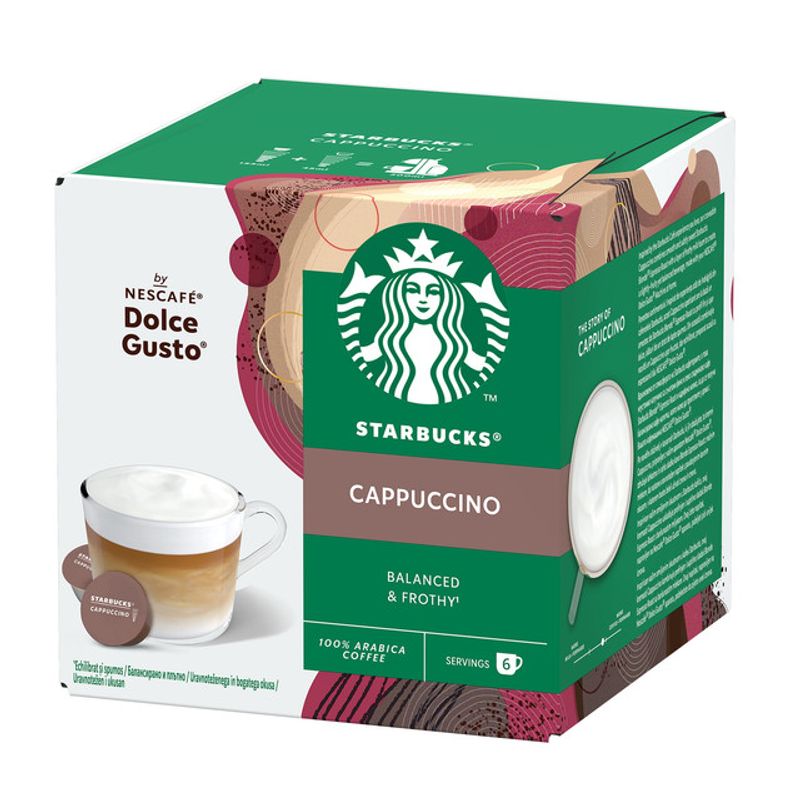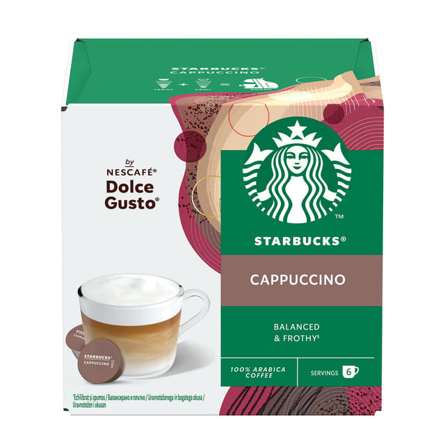 Capsule cafea Starbucks Cappuccino, compatibile Dolce Gusto, 6 capsule cafea x 6 lapte - Comanda online acum