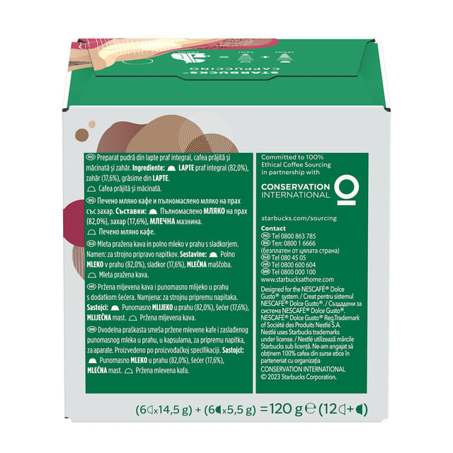BacanieCeai si cafeaCafea capsuleCapsule cafea Starbucks Cappuccino, compatibile Dolce Gusto, 6 capsule cafea x 6 lapte