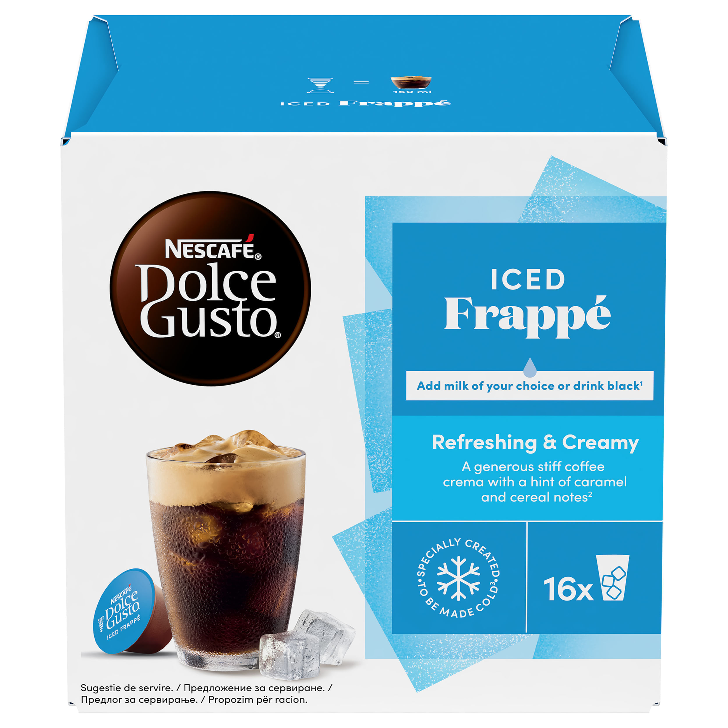 Lasa cremozitatea racoritoare a capsulei NESCAFE Dolce Gusto Iced Frappe sa fie evadarea ta in fata caldurii toride a verii.