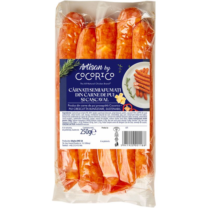 Carnati semiafumati din carne de pui si cascaval Cocorico, 250 g - Comanda online acum