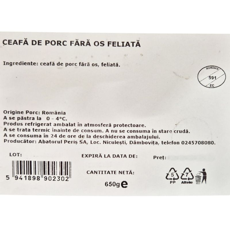 Lactate, Carne, Mezeluri & PesteCarneCarne de porcCeafa de porc fara os Peris, feliata, 500 g
