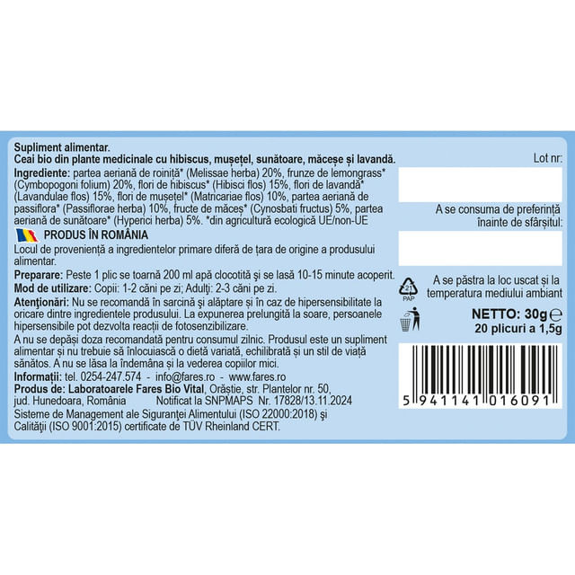 Ceai antistres Fares Bio, 20 pliculete - Comanda online acum