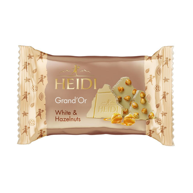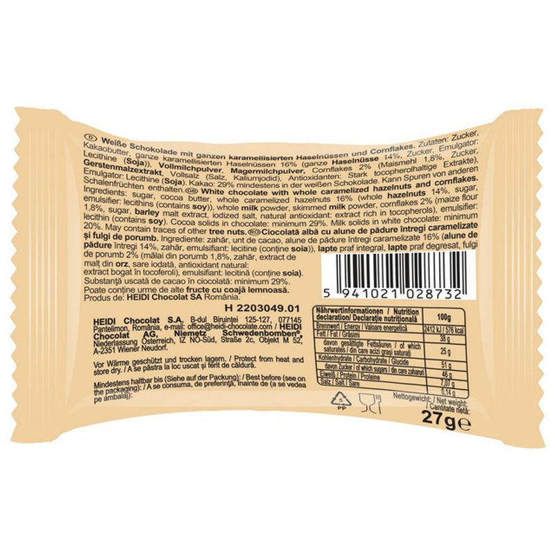 Ciocolata alba cu alune de padure caramelizate si fulgi de porumb Heidi Grand'Or, 27 g - Comanda online acum