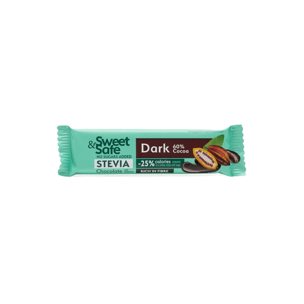 Ai pofta de ceva dulce, dar vrei sa iti pastrezi si silueta in cea mai buna forma? Ciocolata amaruie Sweet & Safe cu 60% cacao 25 g reprezinta alternativa ideala pentru tine. Desi este vorba despre un baton de ciocolata, din compozitia acestuia lipseste complet zaharul.