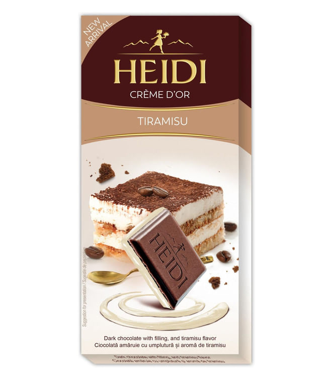 Ciocolata amaruie cu umplutura si aroma de tiramisu Heidi D'or, 90 g Ciocolata amaruie cu umplutura si aroma de tiramisu Heidi D'or, 90 g