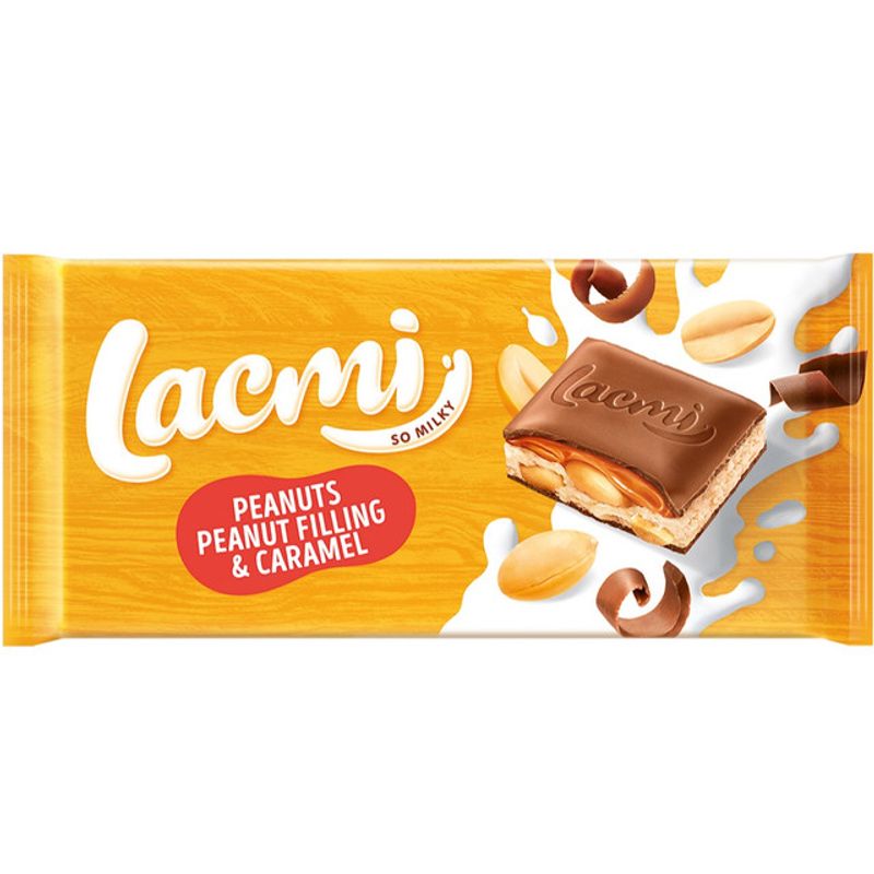 Ciocolata cu lapte, arahide, umplutura de arahide si caramel Roshen Lacmi, 87 g - Comanda online acum