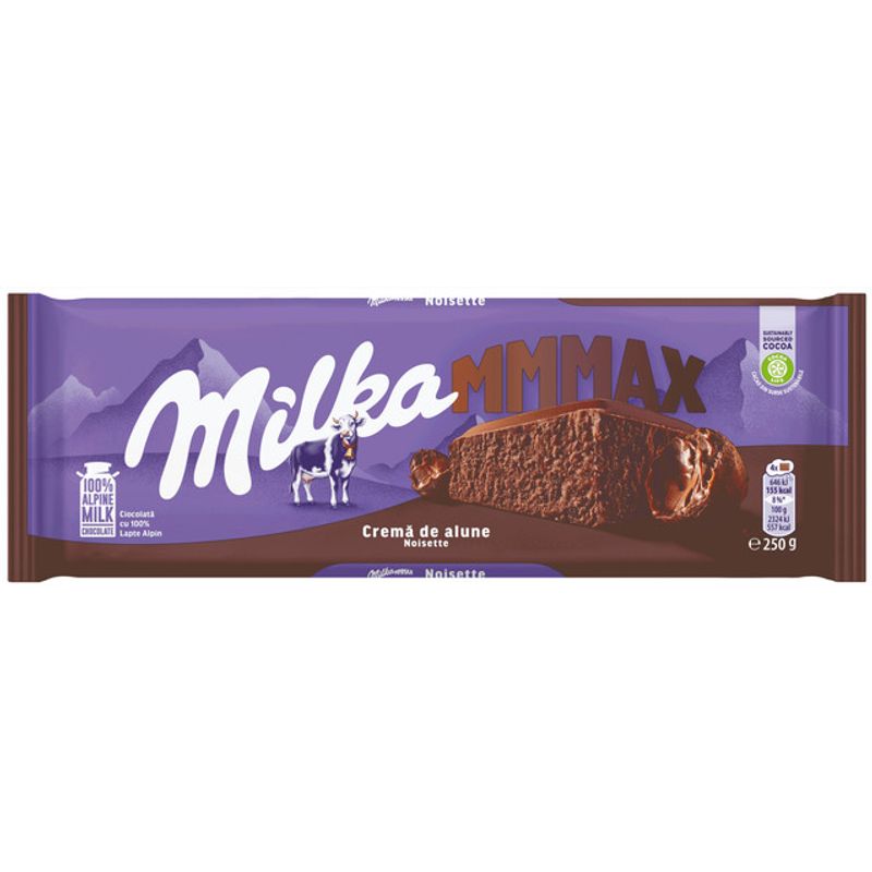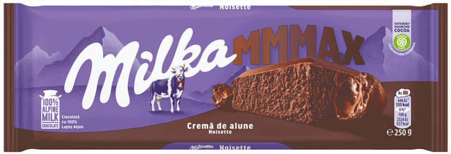 Ciocolata cu lapte si crema de alune Milka MMMAX, 250 g - Comanda online acum