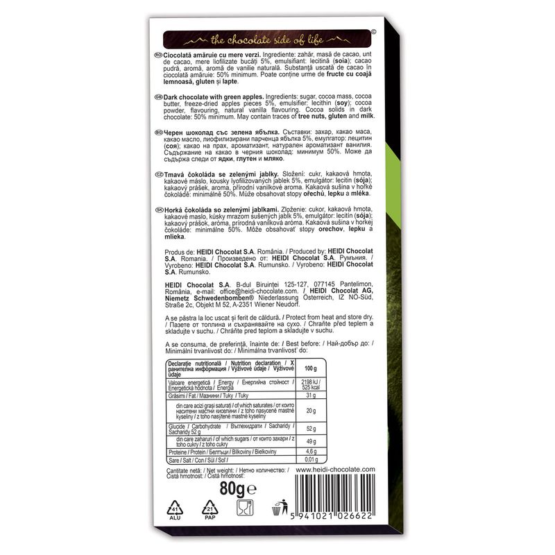 Ciocolata neagra cu mar verde Heidi, 80 g - Comanda online acum
