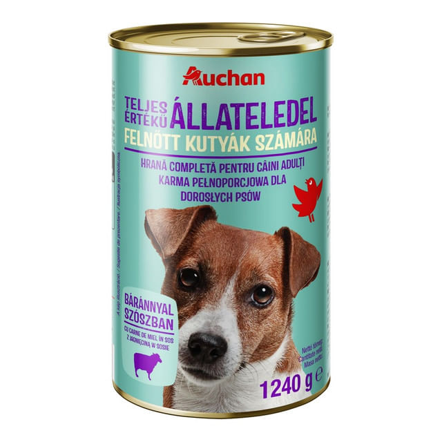 Conserva hrana umeda pentru caini Auchan cu miel in sos, 1240 g - Comanda online acum