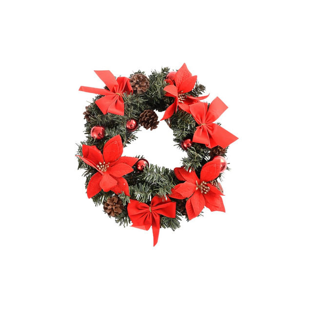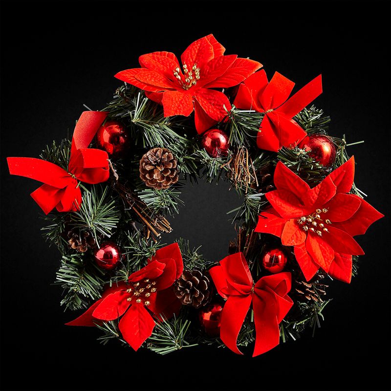 Coronita de agatat Actuel, cu flori de craciunite, conuri si globulete, 30 cm