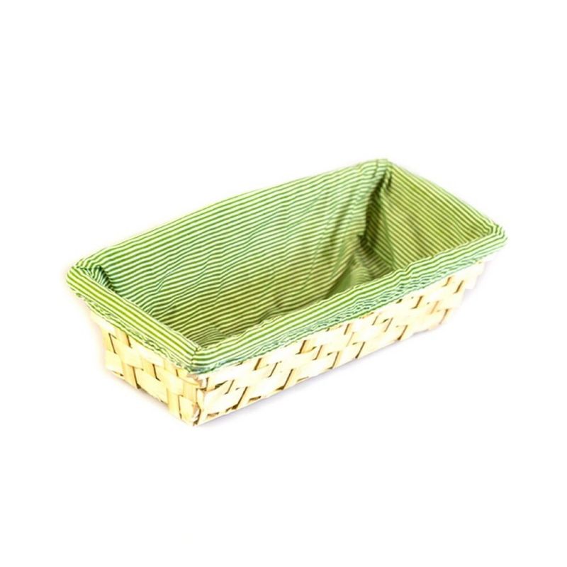 Cos cu material textil si bambus, 20 x 17 x 6.5 cm, culoare verde cu galben Cos cu material textil si bambus, 20 x 17 x 6.5 cm, culoare verde cu galben