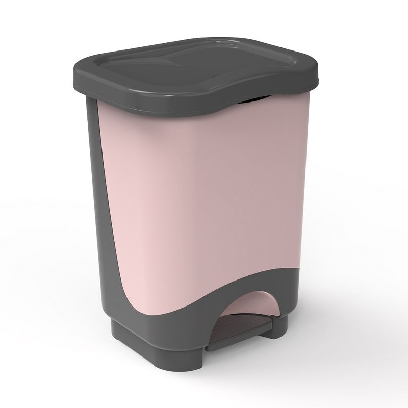 Recipient de plastic, de forma paralelipipedica cu colturi rotunjite, cu capac pozitionat in partea superioara, care este actionat printr-o pedala, situata la partea inferioara, cu corp de diferite culori, cu volum util de 13 litri, face parte din gama Pubele si cosuri de gunoi si este destinat pentru colectarea deseurilor din gospodarie sau birou. Acest produs rezista la temperaturi cuprinse intre -20°C si +60°C si iar calitatea lui este asigurata de faptul ca acesta este produs in conformitate cu certificatele de calitate internationala ISO 2001:2000, ISO 14001:2004 si OHSAS 18001:2007.