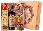 Cos pentru cadou Arome autentice, vin rosu, dulciuri, miere, dulceata si lumanare parfumata
