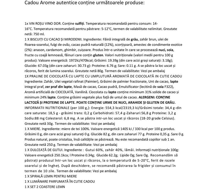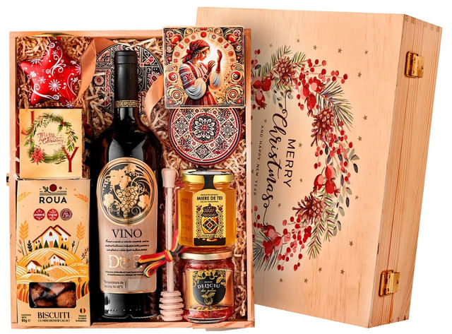 Un dar cu parfum de traditie si plin cu gusturi alese, Cadoul Arome Autentice invita la tihna si rasfat pur! Vinul rosu Vino Dor deschide ritualul savorii, dulceata artizanala si mierea delicioasa aduc bucurie in farfurie, pralinele rasfata, iar accesoriile atent alese transforma fiecare moment in sarbatoare. Ofera acest cadou de Craciun si fii sigur ca e o alegere rafinata pentru cei care apreciaza frumusetea simpla si gustul autentic!