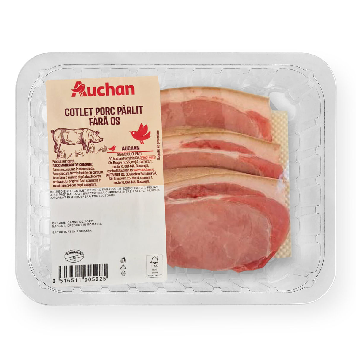 Lactate, Carne, Mezeluri & PesteCarneCarne de porcCotlet de porc parlit fara os Auchan, +/- 1 kg