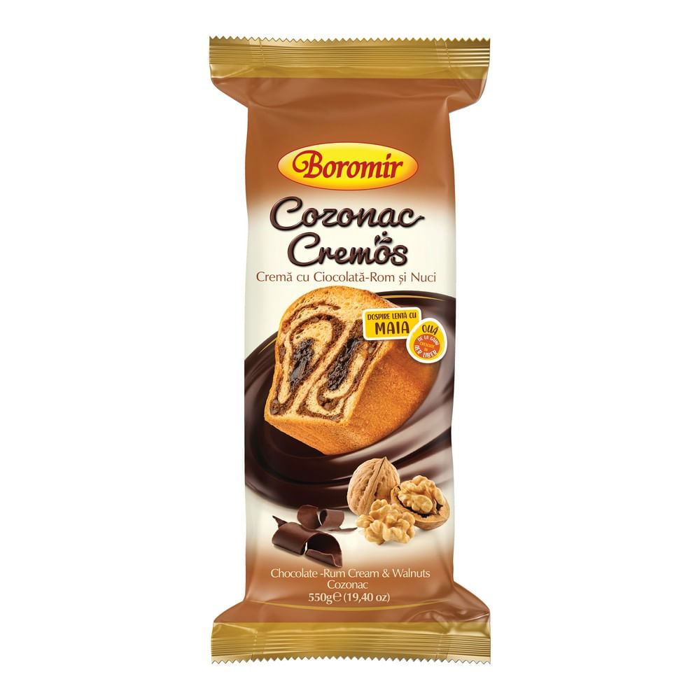 Cozonac Boromir cu crema de ciocolata, rom si nuci, 550 g Cozonac Boromir cu crema de ciocolata, rom si nuci, 550 g