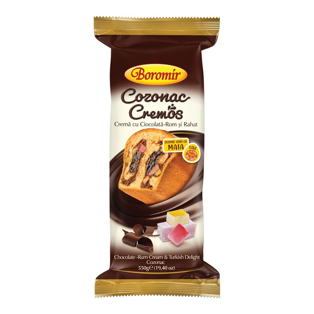 Cozonac Boromir cu crema de ciocolata, rom si rahat, 550 g Cozonac Boromir cu crema de ciocolata, rom si rahat, 550 g