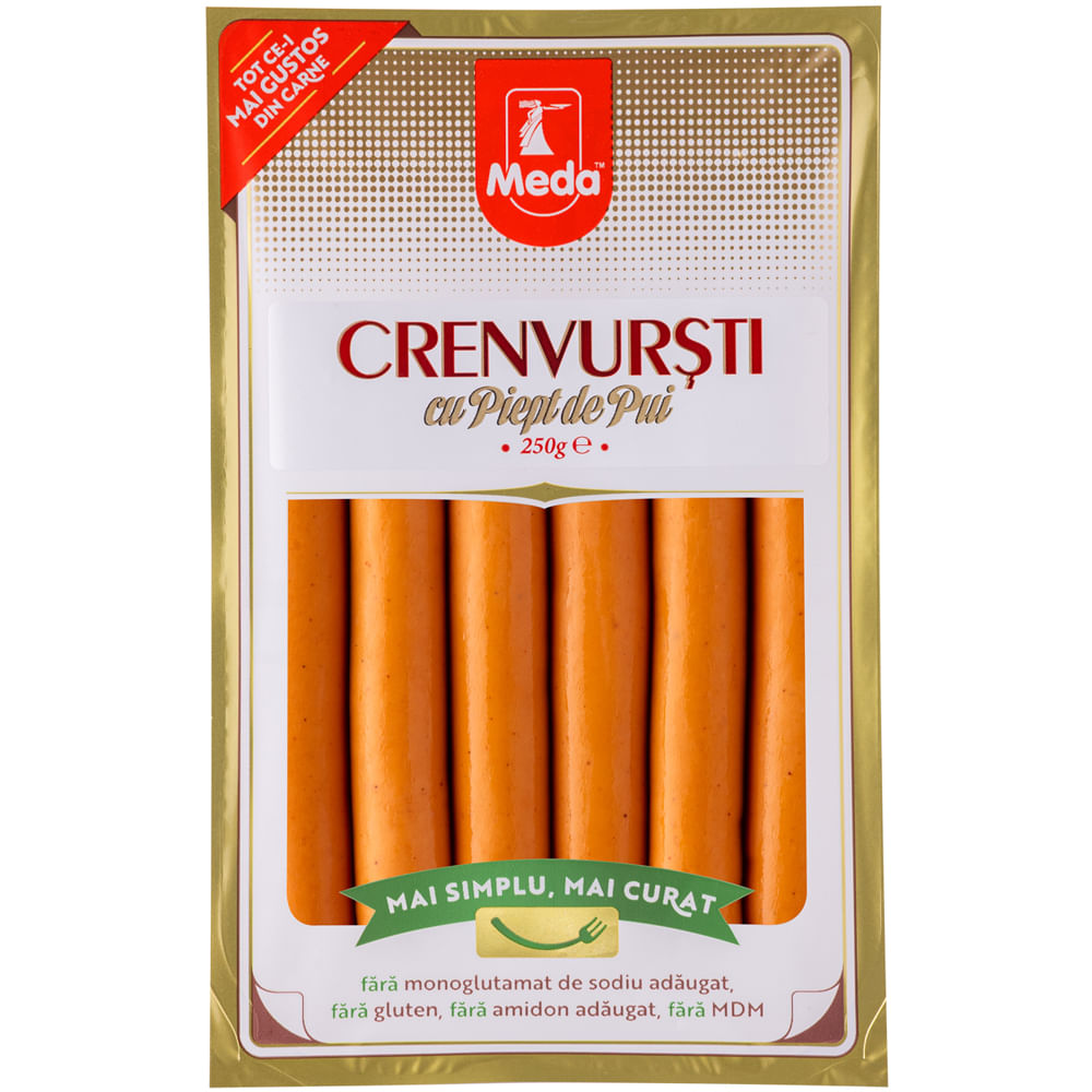 Crenvursti cu piept de pui Meda, 250 g Crenvursti cu piept de pui Meda, 250 g