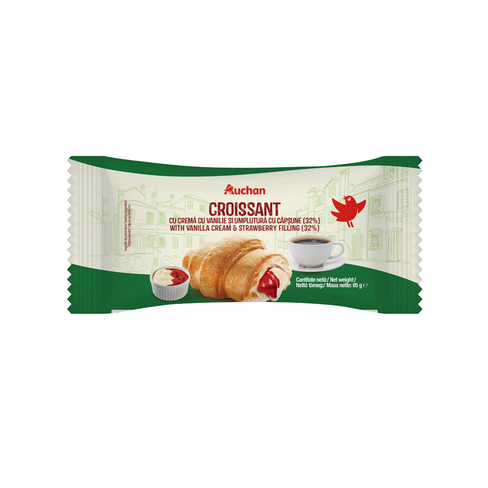 Croissant cu crema cu vanilie si umplutura cu capsune Auchan, 85 g - Comanda online acum