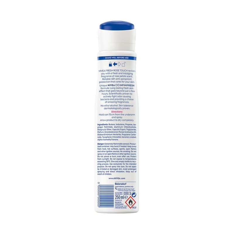 • Experimenteaza formula unica NIVEA ∞ INFINIFRESH: Efect de lunga durata pentru piele improspatata, mai multe ore. S-a dovedit stiintific ca poate combate in mod activ bacteriile care cauzeaza mirosuri neplacute. Ofera o gama diversificata de parfumuri.