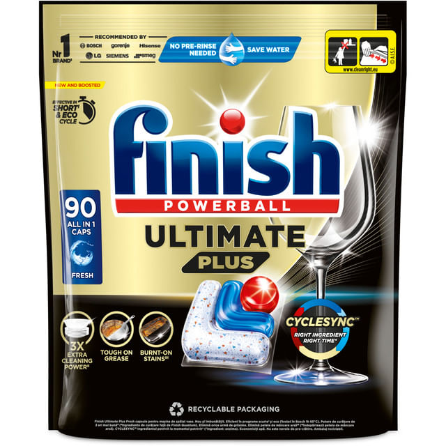 Detergent capsule pentru masina de spalat vase Finish Powerball Ultimate Plus Fresh, 90 bucati - Comanda online acum