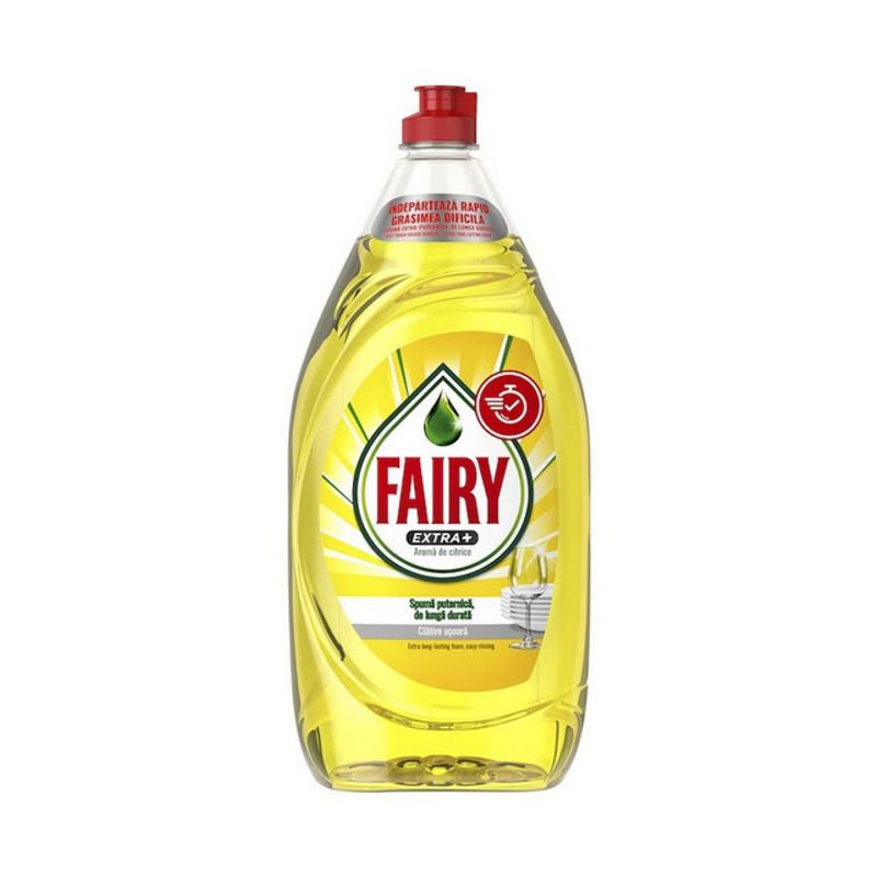 Detergentul de vase lichid Fairy Extra+ ofera o curatare rapida si fara efort cu puterea sa de eliminare a grasimii, in timp ce rasfata simturile cu aroma de citrice. Alege cea mai buna formula Fairy*, pentru eliminarea rapida a grasimii! *fata de toate celelalte produse Fairy din Romania.