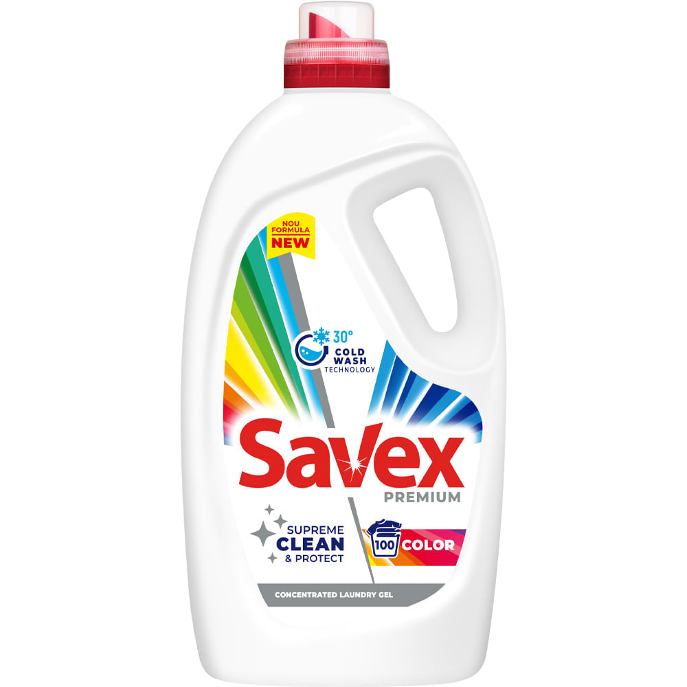 Noul detergent lichid Savex Premium Color se spala eficient chiar si la temperaturi scazute, deoarece culorile hainelor raman stralucitoare spalare dupa spalare.