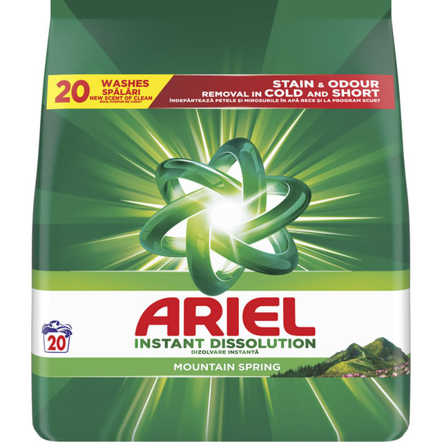 Detergent pudra automat Ariel Instant Dissolution Mountain Spring, 20 spalari, 1.3 kg Detergent pudra automat Ariel Instant Dissolution Mountain Spring, 20 spalari, 1.3 kg