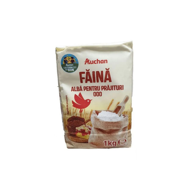 Faina alba pentru prajituri Auchan, tip 000, 1 kg Faina alba pentru prajituri Auchan, tip 000, 1 kg