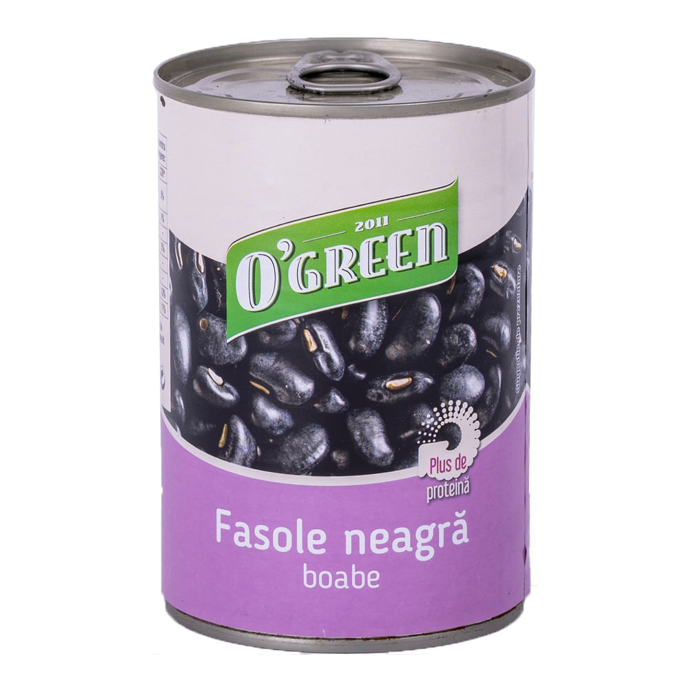 Fasole neagra O'Green, 400 g. Dupa deschidere se pastreaza la frigider.