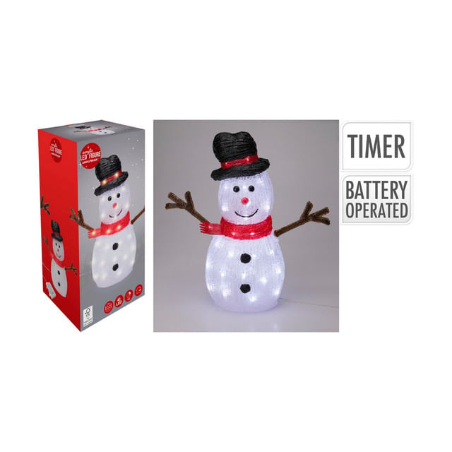 CraciunBrazi artificiali si decoratiuniPentru casa taFigurina de exterior om de zapada, din acrilic, cu LED, 10 cm