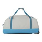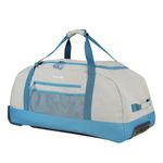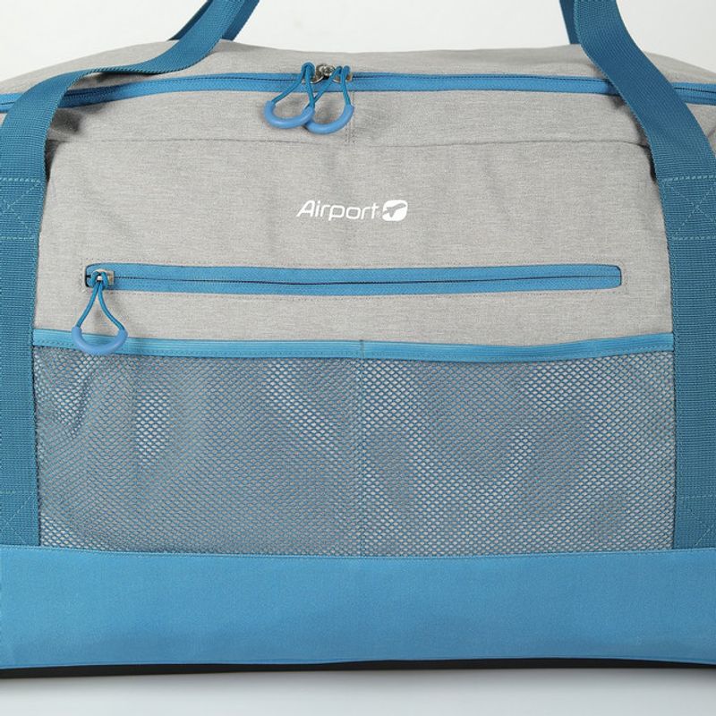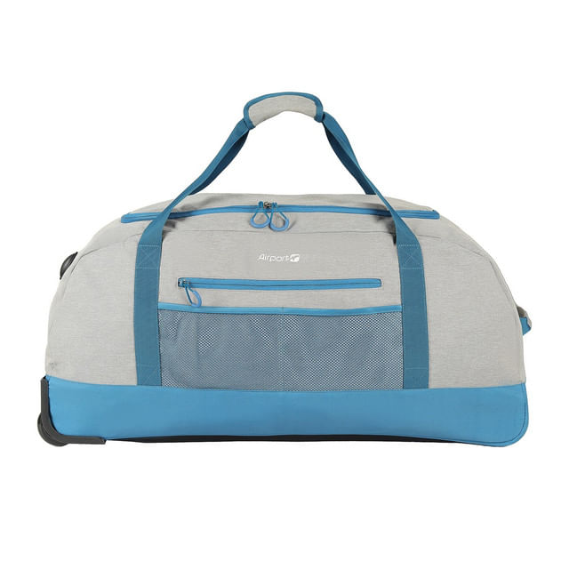 Material: poliester 600D; Functii: 1 buzunar frontal din plasa, 1 buzunar frontal cu fermoar, 1 compartiment principal in forma de U, interior complet captusit, 1 buzunar cu fermoar, 2 manere tip banda, sistem trolley din fier cu logo imprimat serigrafic, 2 roti tip lama, 2 picioruse pentru protectie impotriva prafului