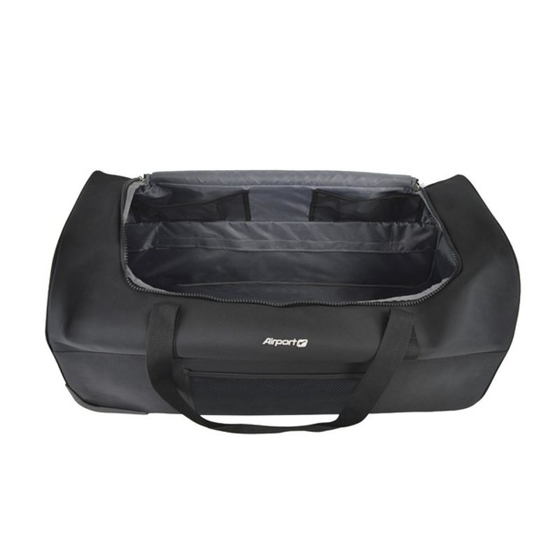 AIRPORT - TROLLEY DUFFLE BAG - NEW FIRST CLASS. Material: poliester jacquard 840D cu EVA; rolley: sistem trolley intern din fier cu buton; Roti: 2 roti tip lama; Captuseala: poliester 210T; Buzunare: 1 buzunar frontal elastic din plasa, 2 buzunare laterale cu fermoar; Logo: broderie Airport; Interior: captuseala completa, 2 buzunare elastice din plasa, 2 buzunare cu fermoar; Functie: rezistent la apa