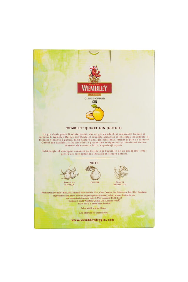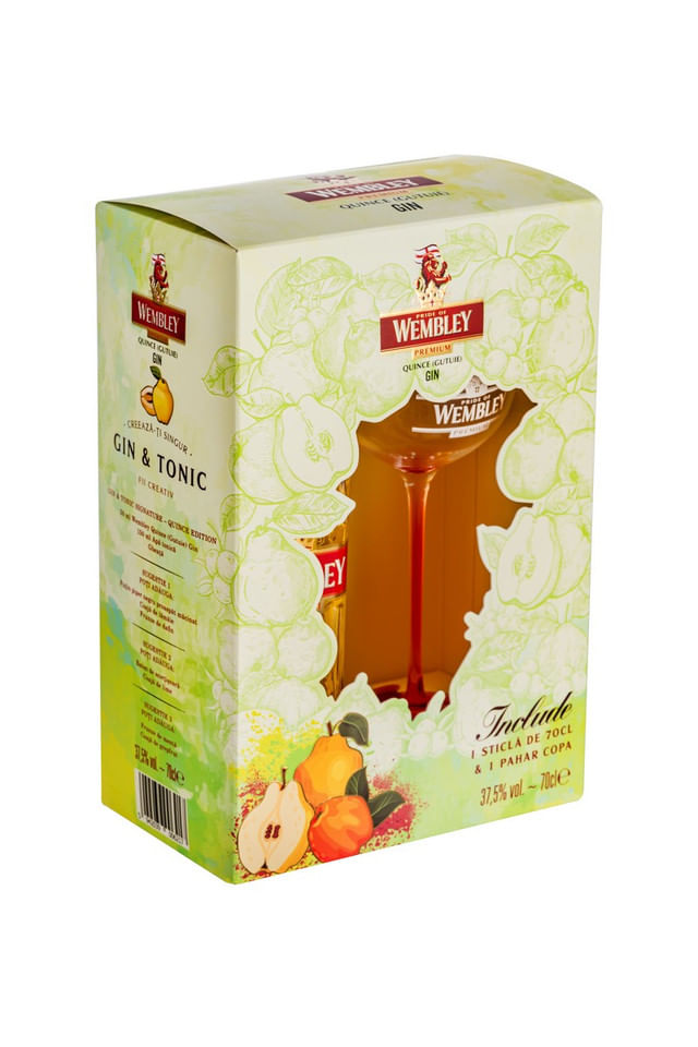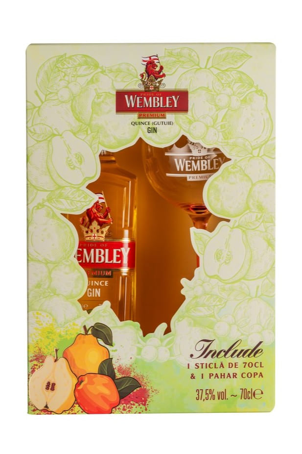 Gin cu aroma de gutuie Wembley Quince, 0.7 l + 1 pahar Gin cu aroma de gutuie Wembley Quince, 0.7 l + 1 pahar