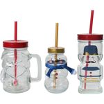 Halba din sticla cu capac si pai Actuel, model de Craciun, diverse modele Halba din sticla cu capac si pai Actuel, model de Craciun, diverse modele