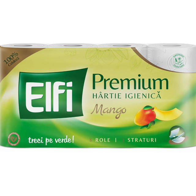 Hartie igienica Elfi Premium Mango, 8 role, 3 straturi - Comanda online acum