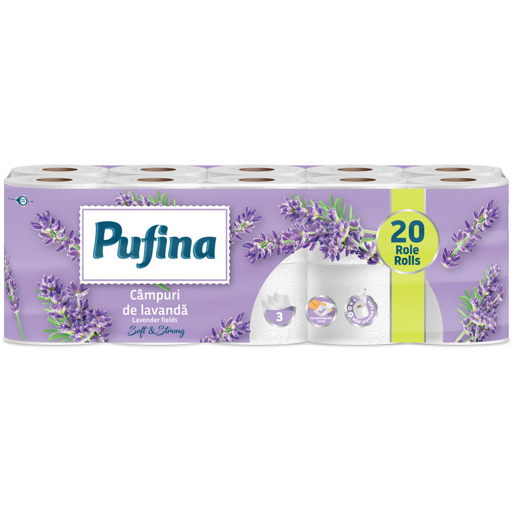 Hartie igienica Pufina Lavander Fields, 3 straturi, 20 role - Comanda online acum