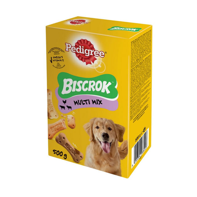 Caini de talie mica, de ex. Dachshund, maxim 1 biscuit pe zi. Caini de talie medie, de ex. Cocker Spaniel, maxim 2 biscuiti pe zi. Caini de talie mare, de ex. Labrador, maxim 4 biscuiti pe zi. Va rugam sa reduceti masa principala a animalului de companie in mod corespunzator. Un vas cu apa proaspata de baut trebuie sa fie intotdeauna disponibil.