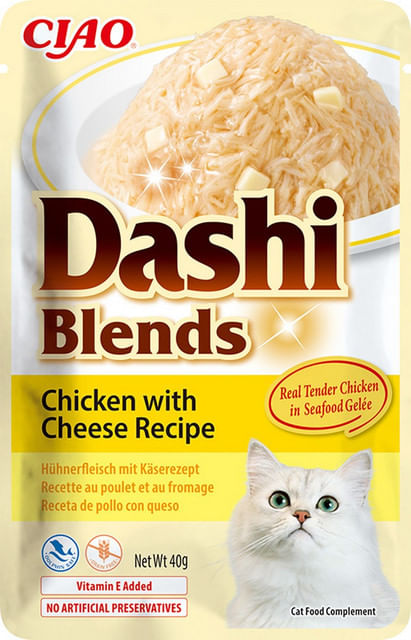 Hrana umeda pentru pisici Ciao Dashi Blends, pui si branza, 40 g Hrana umeda pentru pisici Ciao Dashi Blends, pui si branza, 40 g